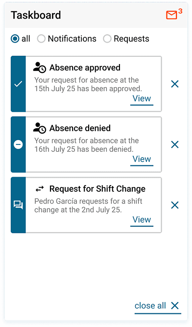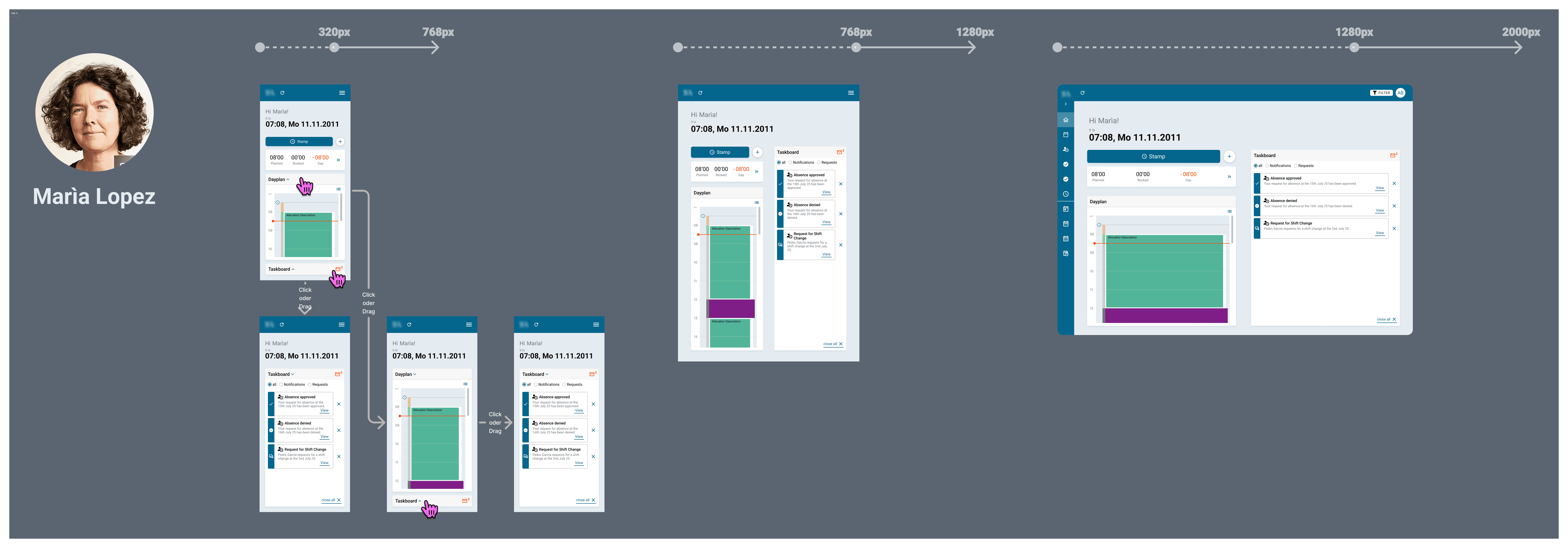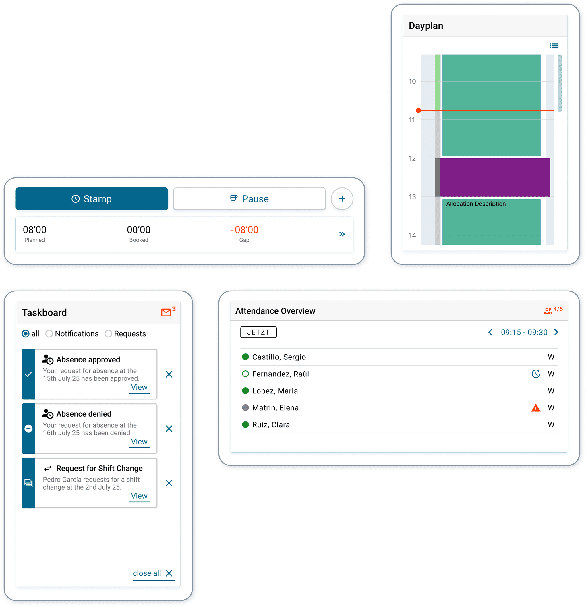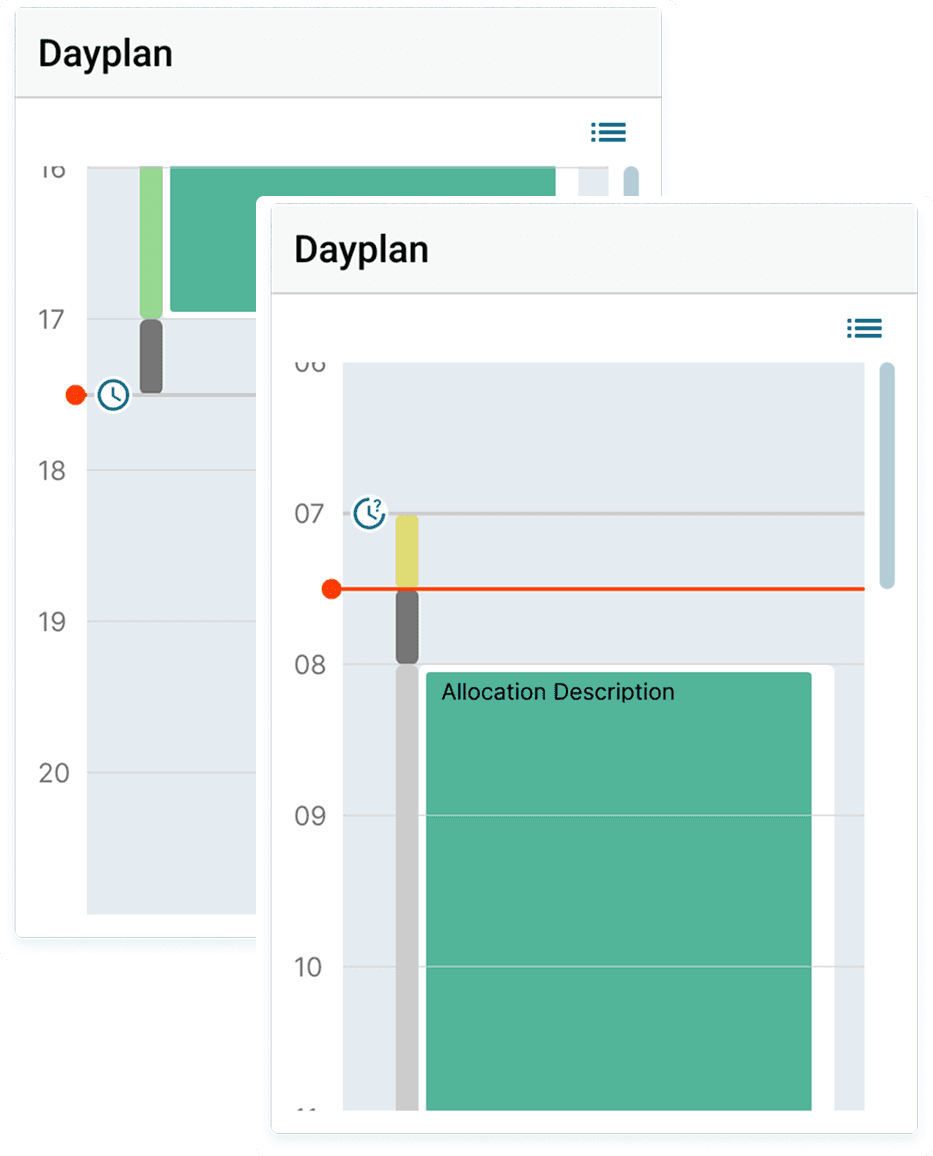 These elements could be shown or hidden depending on shift model and user role, each offering its own user-specific variation.