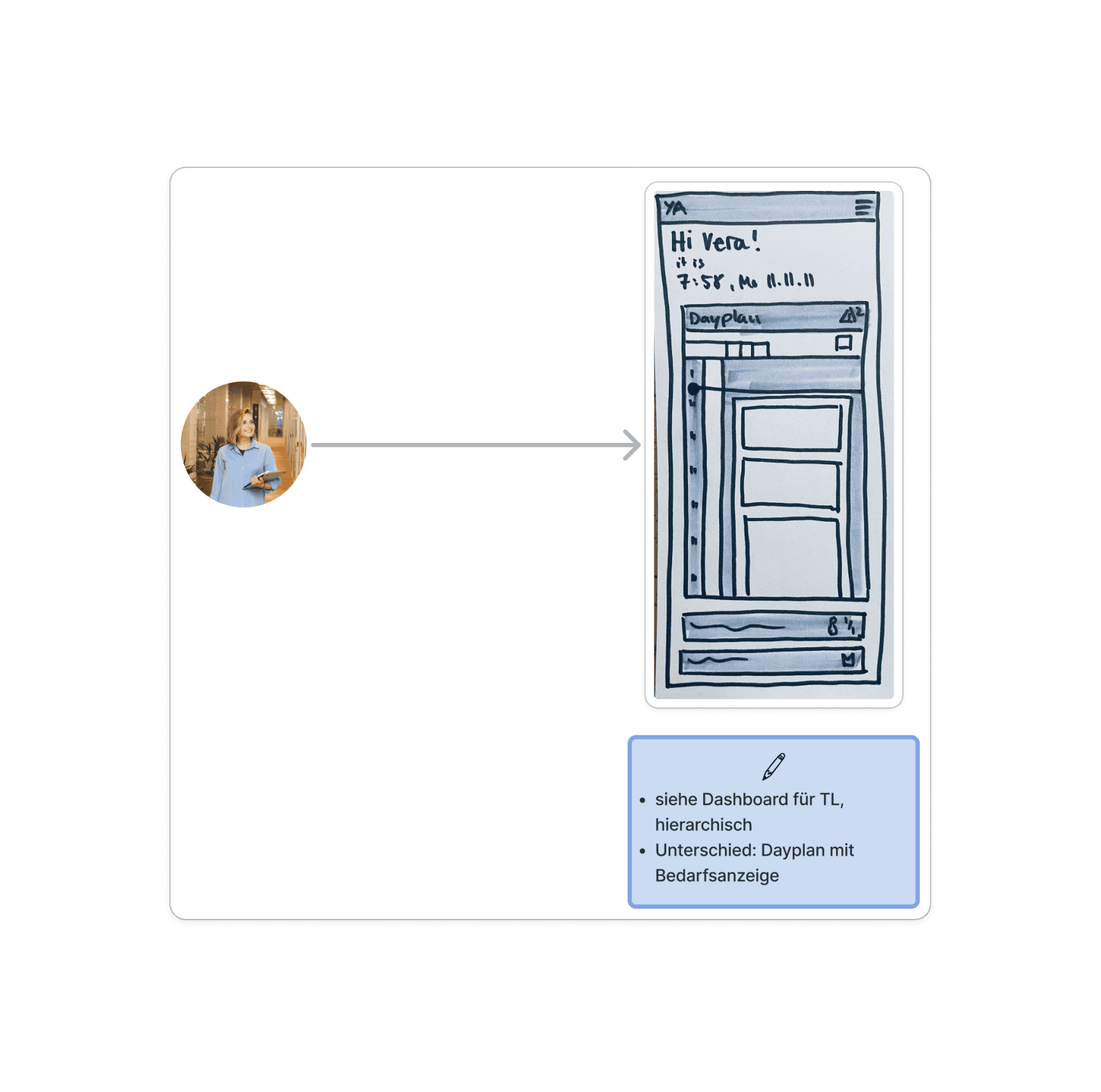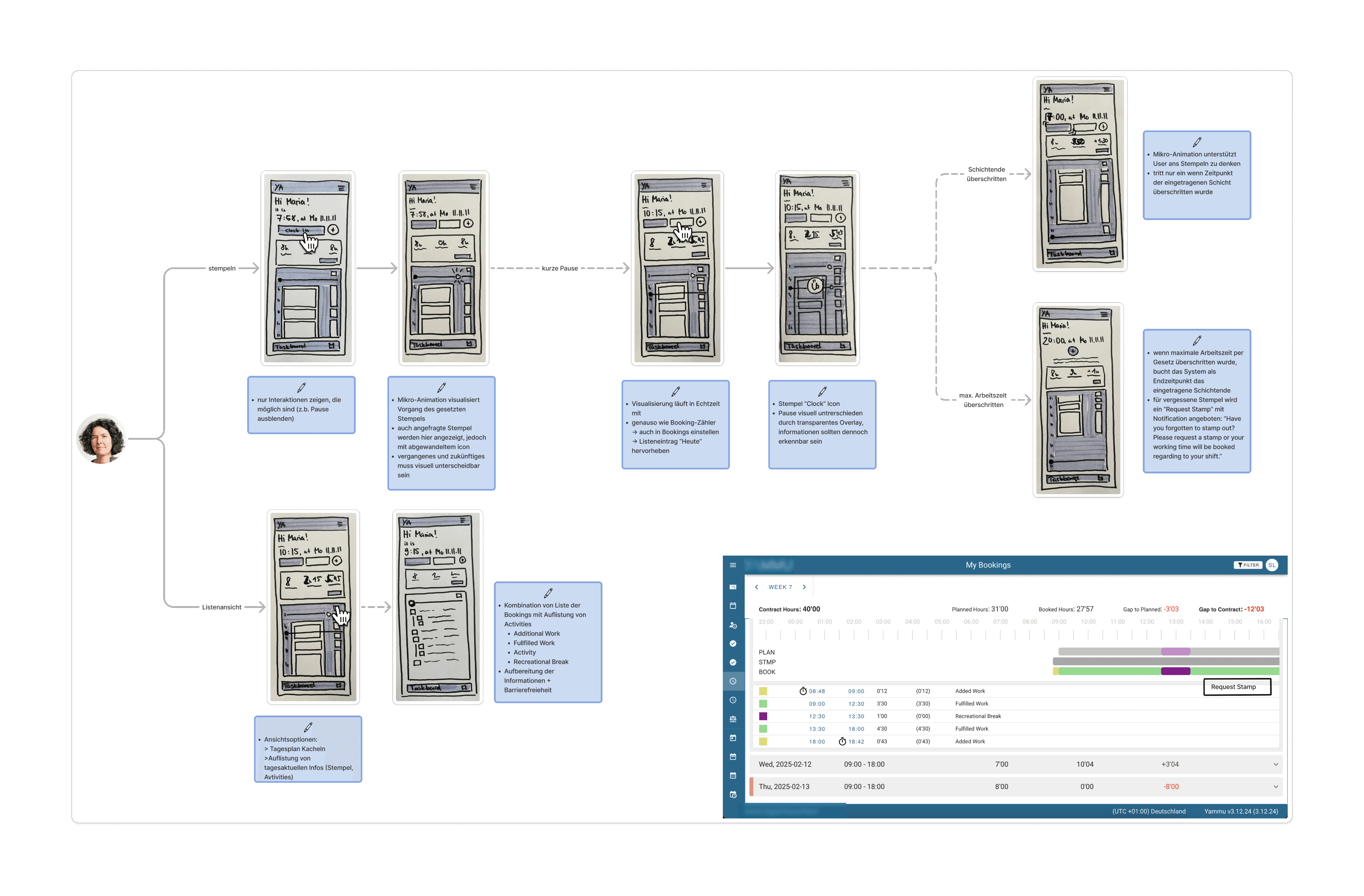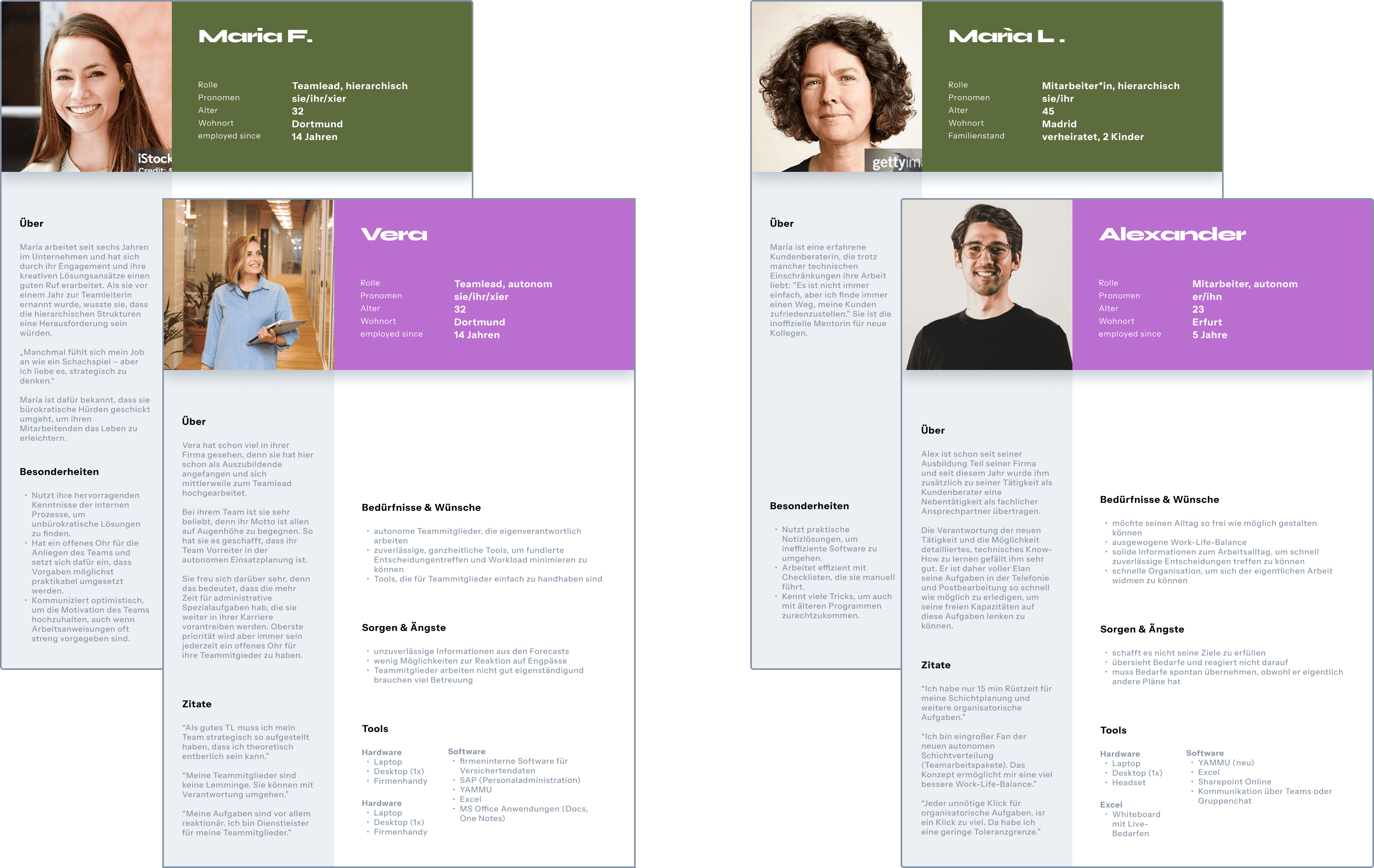 During this process, I noticed that the available information regarding the manager (WFM) role was still too superficial to derive meaningful design decisions from it. Since no additional user research was planned for this project cycle, I decided — in alignment with the Product Owner — to focus in this cycle on the employee (MA) and team lead (TL) roles.
