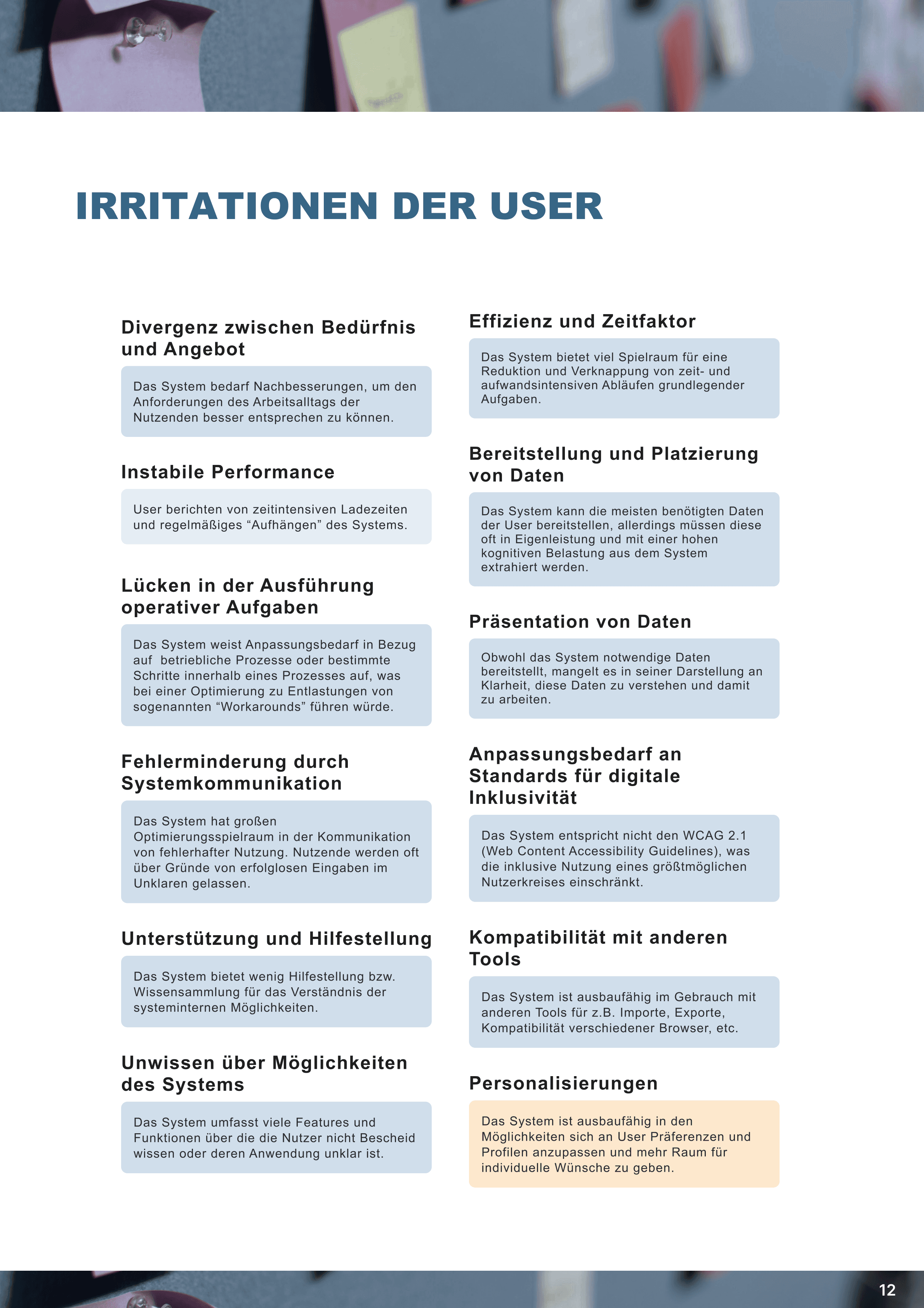 Compilation of identified pain points