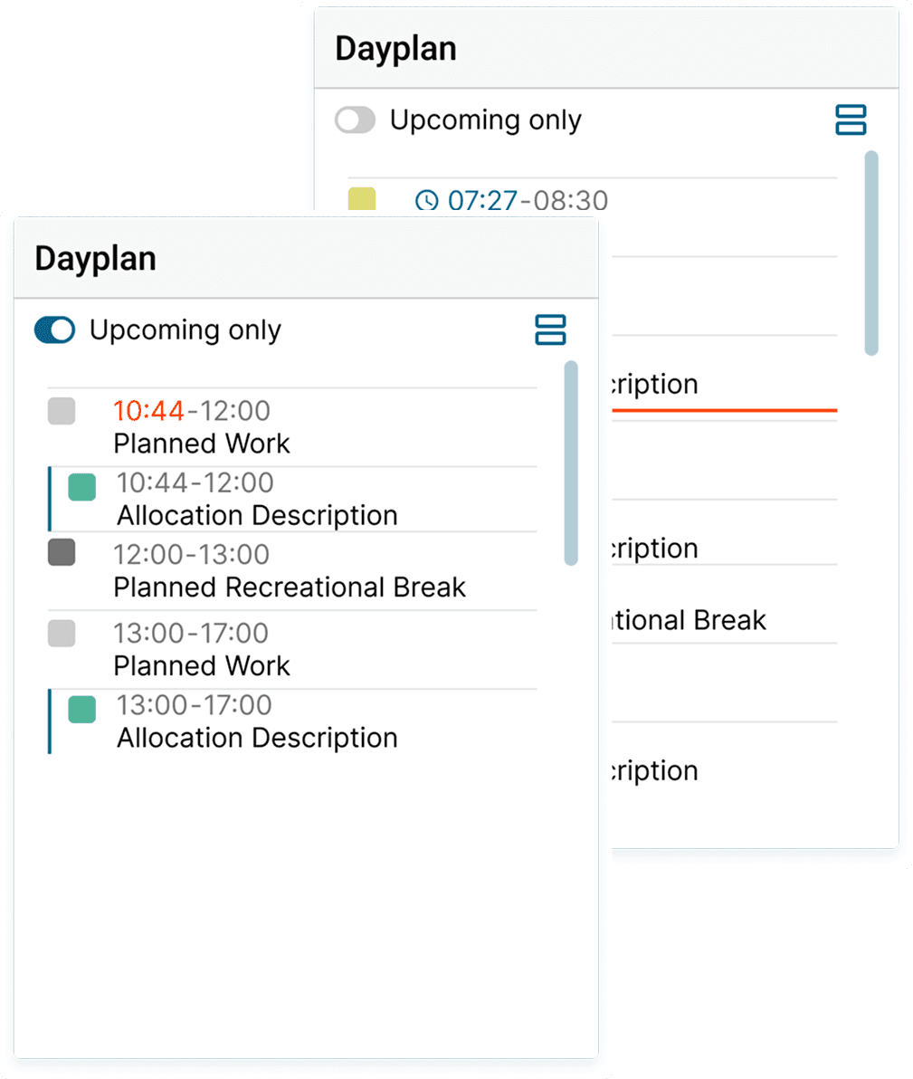 As the “Daily Plan” page was the most frequently used view among all teamleads as well as autonomous employees, it would be valuable to adopt some of its qualities for the new dashboard.