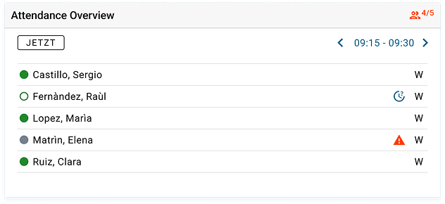 Provide a view of the team’s current attendance status