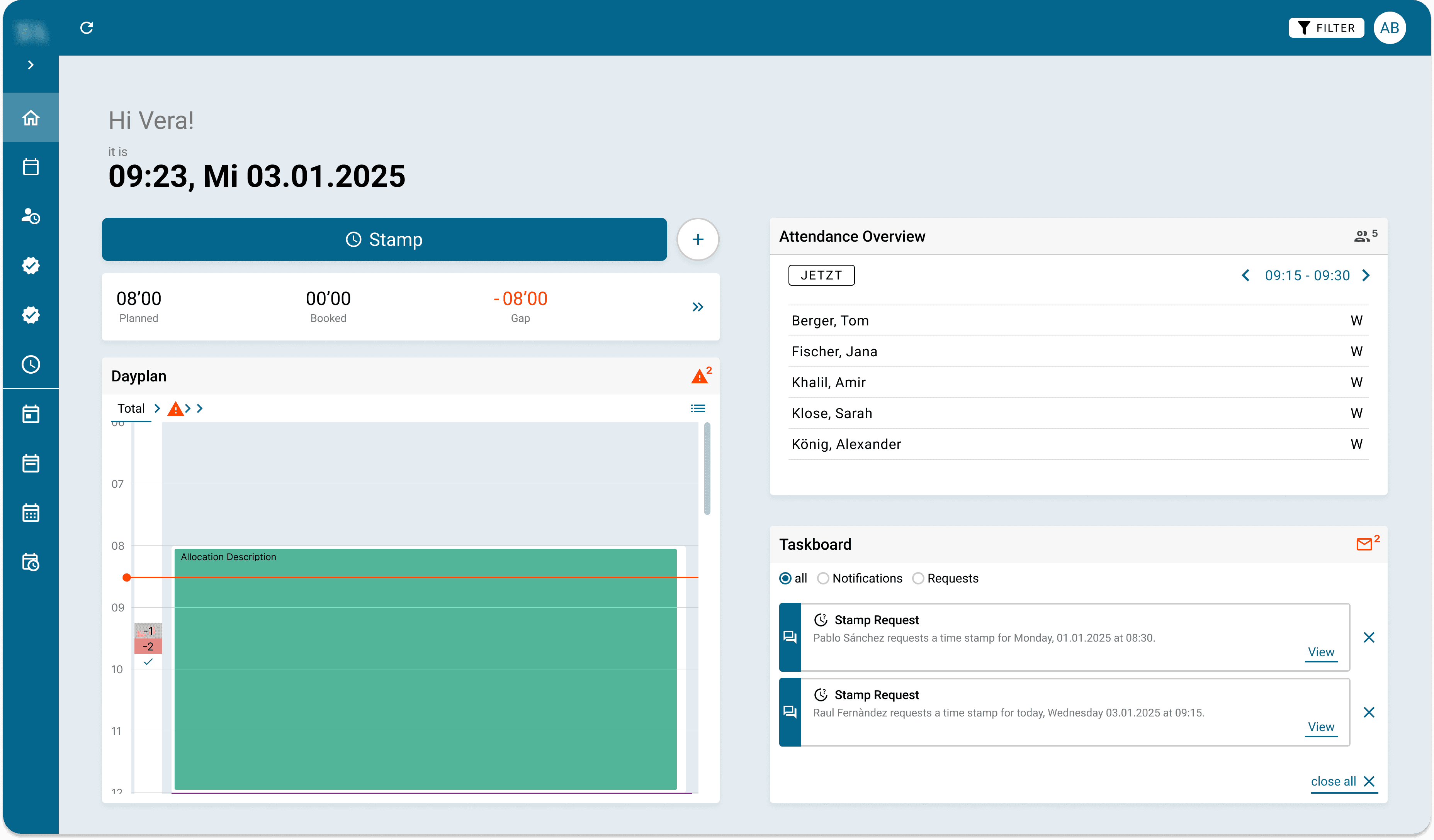 For workforce management, it needs to offer a clear overview of the here and now, helping employees and team leads navigate the tool more easily.